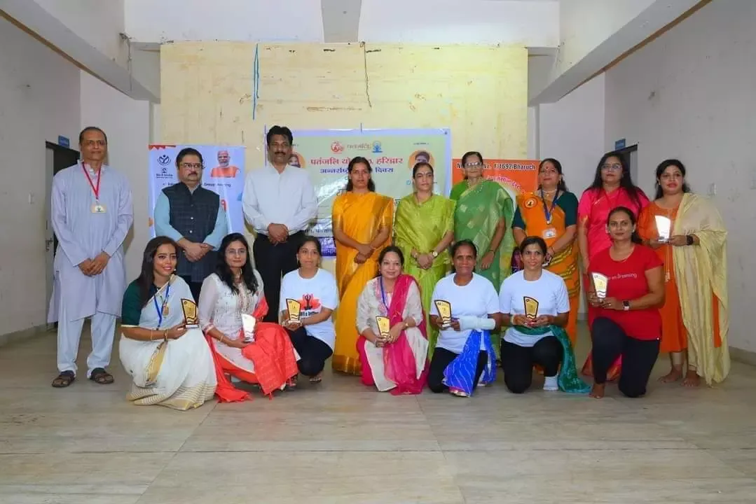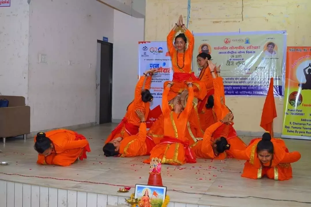 ૯ માં આંતરરાષ્ટ્રીય રાષ્ટ્રીય યોગ દિવસની ઉજવણીના ભાગરૂપે મહિલા પતંજલિ યોગ સમિતિ ભરૂચ અને સંસ્કૃતિ સમાજ સેવા સંસ્થાન ટ્રસ્ટ ભરૂચ દ્વારા આંબેડકર ભવન ખાતે યોગ નૃત્ય સ્પર્ધાનું આયોજન કરાવામાં આવ્યું. જેમાં મુખ્ય અતિથિ તરીકે ભરૂચના ધારાસભ્ય રમેશભાઈ મિસ્ત્રી, મહિલા પતંજલિ યોગ સમિતિ દક્ષિણ ગુજરાત ના પ્રભારી તનુજા આર્યા, જેએસએસ ભરૂચ ના નિયામકશ્રી ઝયનુલ આબેદિન સૈયદ, નગરપાલિકા ઉપપ્રમુખ નિનાબા યાદવ, પૂર્વ નગર પાલિકા પ્રમુખ ઈન્દિરાબા રાજ, મહિલા પતંજલિ સંવાદ પ્રભારી પુષ્પાબેન સંગાથિયા, મહિલા પતંજલિ ભરૂચ જિલ્લા પ્રભારી હેમાબેન પટેલ, મહિલા પતંજલિ સુરત જિલ્લા પ્રભારી અંમિતાબેન ગાંધી, દક્ષાબેન રાઠોડ તથા મોટી સંખ્યામાં આમંત્રિત મહેમાનો, યોગ શિક્ષકો તથા યોગસાધકો ઉપસ્થિત રહ્યા હતા. યોગ નૃત્ય સ્પર્ધામાં કુલ ૧૩ ટીમોએ ભાગ લીધો હતો.