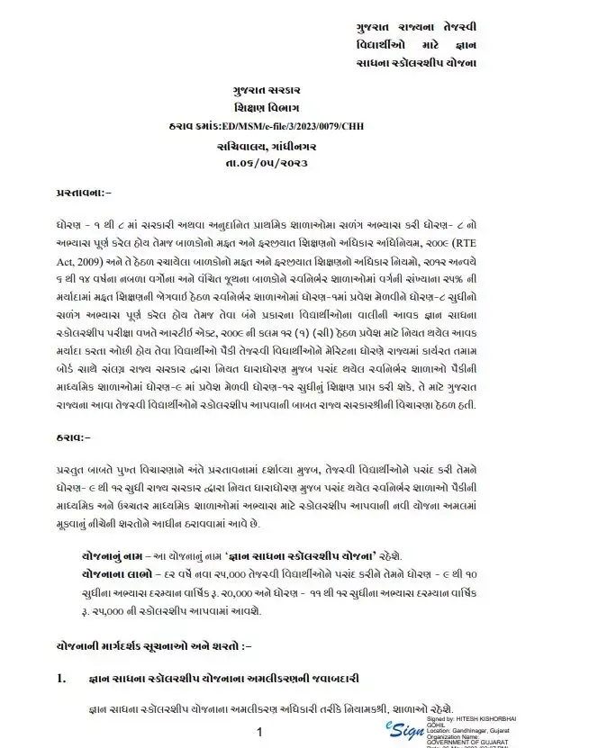 વિદ્યાર્થીઓના હિતમાં સરકારે વધુ એક મહત્વનો નિર્ણય કર્યો છે, રાજ્ય સરકારે નવી સ્કોલરશિપ યોજના જાહેર કરી છે જે જ્ઞાન સાધના સ્કોલરશીપ યોજના છે આ યોજનાનો લાભ લેવા માટે વિદ્યાર્થીઓએ પરીક્ષા આપવી પડશે અને જે મેરીટના આધારે સ્કોલરશીપ આપવામાં આવશે.