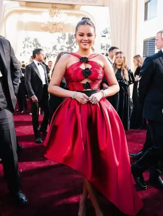 સેલેના ગોમેઝે પોતાની ગાયકીથી દરેકના દિલ જીતી લીધા છે, પરંતુ ગોલ્ડન ગ્લોબ એવોર્ડ્સમાં તેણે પોતાના રેડ હોટ લુકથી દરેક ફેન્સને દિવાના બનાવી દીધા છે. ગાયક અને અભિનેત્રી કસ્ટમ જ્યોર્જિયો અરમાની પ્રીવે રૂબી લાલ ડ્રેસમાં અદભૂત દેખાતી હતી.